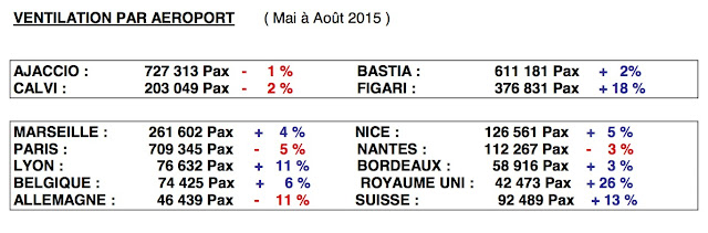- Pour l'aérien, même chambardement relatif. La croissance est forte sur Figari (+15%), significative sur Bastia (+3%) et en recul ailleurs, tandis que que le phénomène de diversification des origine des visiteurs s'amplifie sur les 4 premiers mois de la saison (Lyon, Suisse,Royaume Uni ...)